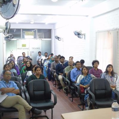 East West University Center for Research and Training (EWUCRT) organized a research seminar titled “Large scale isolation, purification & characterization of the natural products from Terminalia Arjuna & Terminalia Chebula, and evaluation of their role in metabolic disorders” November 05, 2018 at 11.50 am in EWUCRT Seminar Room (Room no- 560), 4th floor, Block-C of East West University. The presenters of the seminar were Professor Chowdhury Faiz Hossain, Dr. Mst. Rejina Afrin, Assistant Professor, Mantasha Tabassum, Lecturer, Department of Pharmacy, East West University and Dr. Aditya Arya, School of Medicine, Faculty of Health and Medical Sciences, Taylor’s University, Malaysia.