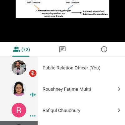 East West University Center for Research and Training (EWUCRT) organized a research seminar on “A dataset on human gut microbiome and resistor of urban and rural people in Dhaka: A comparative metagenomics approach" on 17th September 2020 at 09.00 pm on google meet app. The Presenters of the seminar were Ms. Nusrat Jahan Antora, Lecturer, Dr. Suraia Nusrin, Assistant Professor and Chairperson, Ms. Roushney Fatima Mukti, Senior Lecturer, Department of Genetic Engineering and Biotechnology, East West University.
