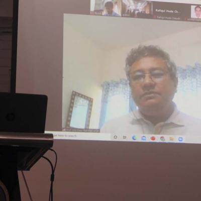 East West University Center for Research and Training (EWUCRT) organized a research seminar titled “Cleaning Intervention Strategies under Practical Environmental and Logistical Scenarios to Maximize Revenue of Soiling Affected Solar Panel Arrays” on 02 October 2022 at 10.10 am in EWUCRT Seminar Room (Room no- 560), 4th floor, Block-C of East West University. The presenters of the seminar were Dr. M. Ryyan Khan, Associate Professor, Department of Electrical and Electronic Engineering, East West University, and Dr. Redwan N. Sajjad, Associate Professor, Department of Nanomaterials and Ceramic Engineering, Bangladesh University of Engineering and Technology (BUET).