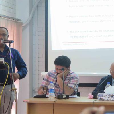 The seminar was conducted by Dr. Rafiqul Huda Chaudhury, Member, Board of Trustees, EWU and Chairperson of EWUCRT. Dr. Saidur Rahman Lasker, Member, Board of Trustees, EWU, Professor Dr. Fakrul Alam, Pro-Vice Chancellor, along with faculty members and students of EWU, officials of EWUCRT, also attended the seminar.